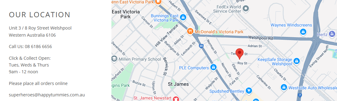 *Locations are determined by Happy Tummies using Australia Post tables.