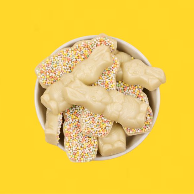 Our Free From Family Co Easter Bunnies White Choc with Sprinkles are a delightful Easter treat for your family, completely free from gluten, dairy, nuts, and animal products.
